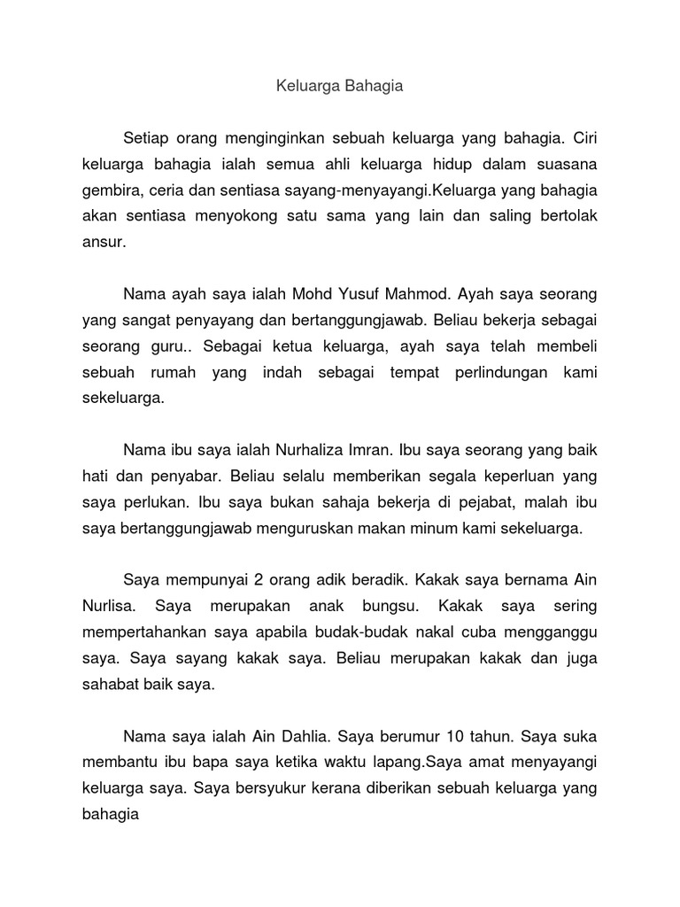 Add to my workbooks (0) download file pdf embed in my website or blog add to google classroom add to microsoft teams. Hai,salam perkenalan nama saya natasha.saya akan menceritakan tentang keluarga saya bahagia. Sejujurnya, alasan saya terpilih (sebagai sasaran) hanyalah kerana kepercayaan saya. katanya. Semoga kita sentiasa saling menyayangi hanya kerana allah. Jadi disitu saya bisa melihat,dia main2 atau serius dengan kepercayaan saya itu.