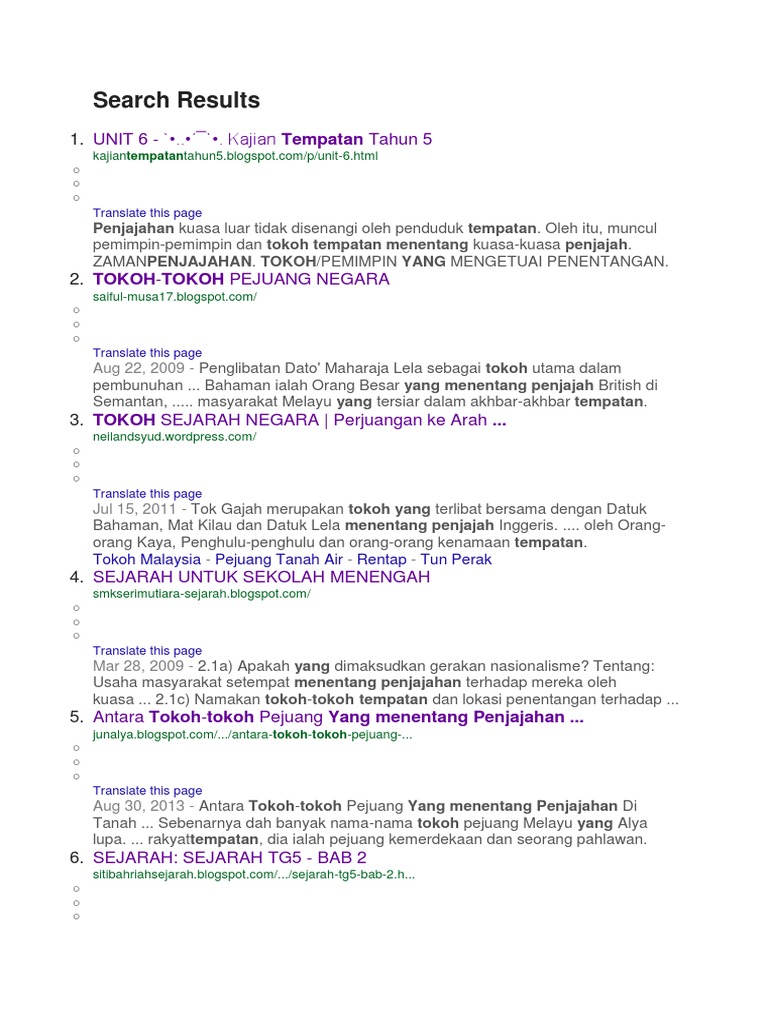 Mar 16, 2015 · walaupun usahanya menentang dan mengusir penjajah dari bumi melayu tidak kesampaian, semangat cintakan agama , bangsa dan tanah air yang tertanam kukuh di jiwa tokoh itu masih kekal disanjung sehingga kini. Pada tahun 1831, dol said berjaya mengalahkan british dengan menggunakan taktik perang gerila dan mendapat bantuan pembesar dari daerah seri menanti, sungai ujong,johol dan muar. Tok gajah merupakan tokoh yang terlibat bersama dengan datuk bahaman, mat kilau dan datuk lela menentang penjajah inggeris. Merangkumi tanah melayu, singapura, sarawak, borneo utara (kemudian dikenali sebagai sabah) dan brunei. Kesedaran tok janggut terhadap agama , bangsa dan tanah air dipupuk sejak kecil.